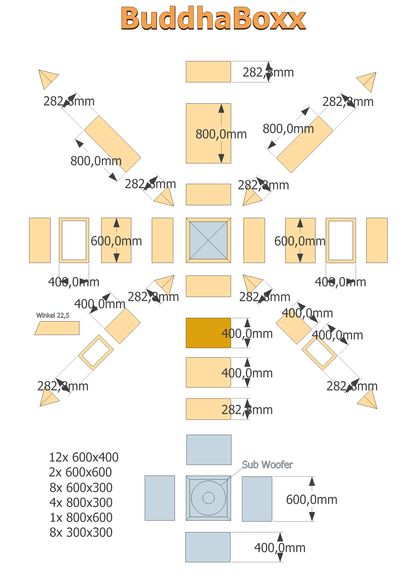als auch durch die vier Mittel-Hochtöner in den oberen Dreiecken.